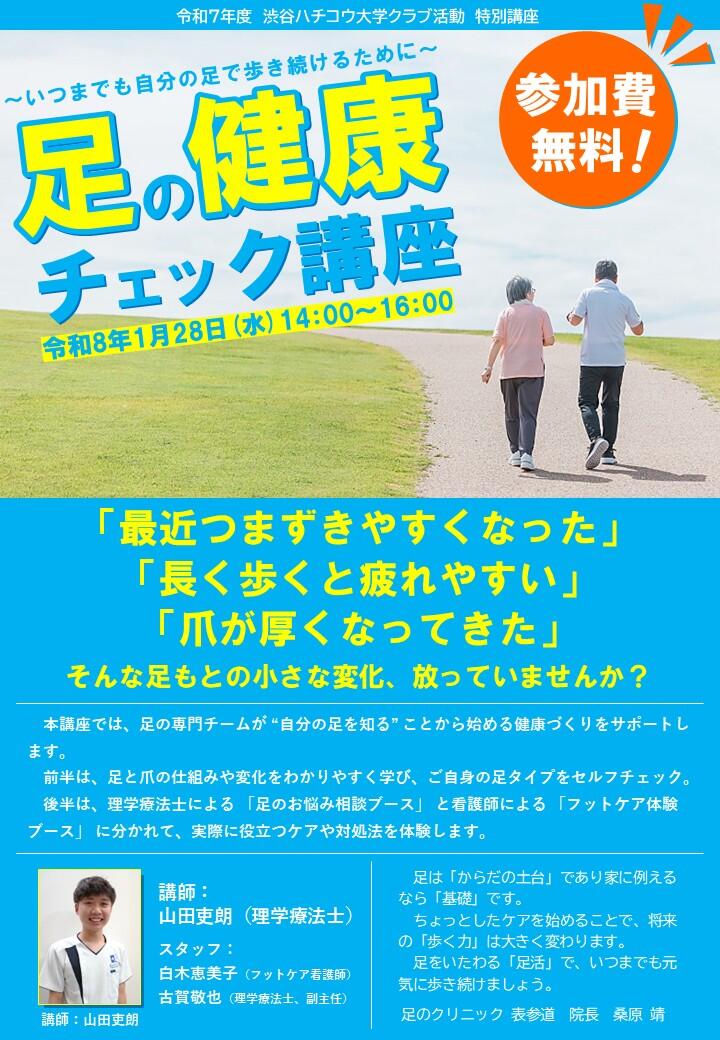渋谷ハチコウ大学クラブ活動 特別講座「~いつまでも自分の足で歩き続けるために~足の健康チェック講座...